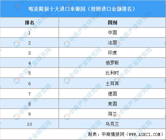 喀麦隆自185个国度(地域)进口商品,前十猛进口来历地国为中国、法国、印度、俄罗斯等,此中,中国是喀最大的进口来历地国,占其进口总额的17%。